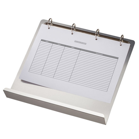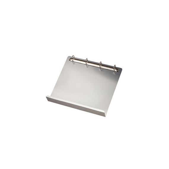 Supporto con retro magnetico per esporre grandi quantità di documenti facilmente sfogliabili e removili dotato di ampio piano di appoggio e supporto per penne. Dotato di 4 anelli standard, può essere utilizzato con buste perforate, fogli perforati o le specifiche buste rinforzate Djois con magnete. Realizzato in alluminio composito. Utilizzabile su superfici metalliche, come portablocco, o anche su lavagne magnetiche. Dimensioni: A4 31x32x5,3cm.