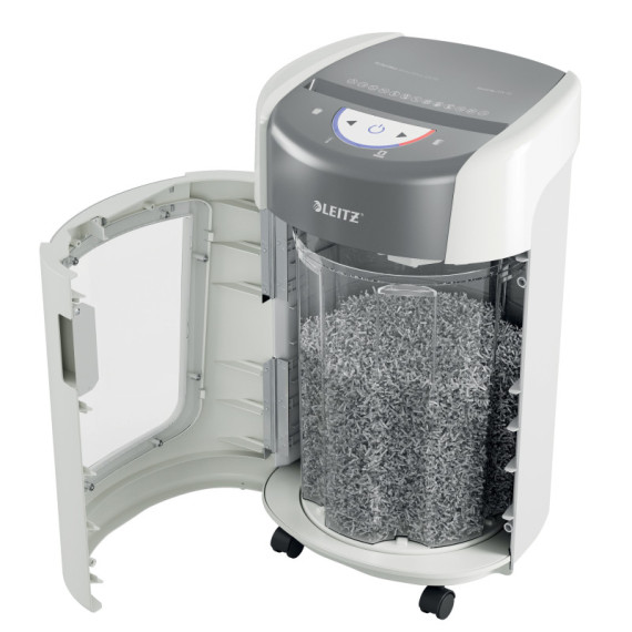 Il distruggidocumenti Leitz IQ OptiMax, pensato per l’ufficio domestico, offre una soluzione innovativa ed elegante, garantendo massima sicurezza e tranquillità nella gestione dei documenti. Questo modello a microtaglio ad alta sicurezza (DIN P5) distrugge fino a 6 fogli A4 alla volta. Grazie all’esclusiva tecnologia BRT (Bin Rotation Technology), la capacità del contenitore aumenta del 45%* (+70 fogli A4), riducendo la frequenza dello svuotamento. Il meccanismo rotante distribuisce la carta in modo uniforme, evitando accumuli e permettendo una distruzione più efficiente. Il contenitore da 15 litri può raccogliere fino a 225 fogli A4. Autonomia di 20 minuti, assicura una triturazione affidabile e sicura per lo smaltimento quotidiano dei documenti. Colore: bianco.