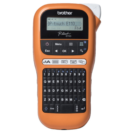 Etichettatrice palmare professionale per il settore elettrico con tastiera QWERTY, display LCD, 200 simboli. La P-touch E110 è un'etichettatrice industriale palmare leggera, sviluppata con funzioni di facile utilizzo per creare tipi di etichette c'è anche spazio per le cassette nastro aggiuntive, inclusi i nastri adesivi forti e i nastri ID flessibili, sviluppati appositamente per La tastiera QWERTY, che permette un semplice utilizzo dell'etichettatrice, presenta anche dei tasti dedicati alle operazioni di etichettatura comuni, quali identificazione dei cavi (etichette per l'avvolgimento e l'indicazione dei cavi), etichettatura della mascherina e numerazione sequenziale. Un tastierino numerico dedicato facilita la creazione di etichette numeriche e ci sono 200 simboli integrati tra cui simboli elettrici comuni, simboli di comunicazione dati, simboli AV e simboli di sicurezza. il display LCD grafico di alta qualità rende facile visualizzare questi simboli e mostra in anteprima l'etichetta prima della stampa. È dotata di una velocità di stampa di 20 mm/secondo che accelera le operazioni grazie alla stampa di ogni etichetta in pochi secondi. Tiene in memoria i progetti delle etichette recenti, così da richiamare più velocemente e stampare in pochi semplici passi le etichette più stampate. • Stampa di etichette laminate di larghezza compresa tra 3,5 mm, 6 mm, 9 mm e 12 mm