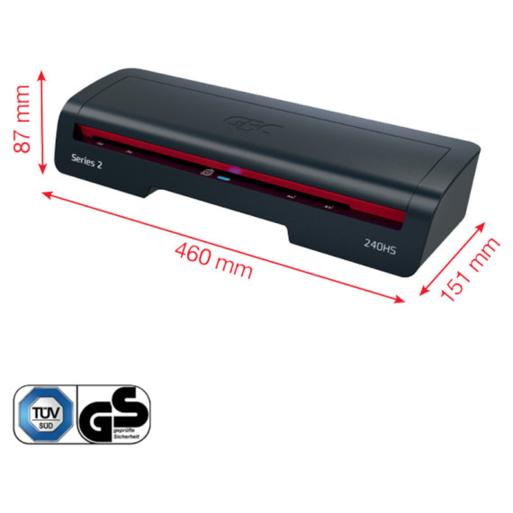 GBC 240HS è una soluzione elegante ed efficiente per le esigenze di plastificazione di tutti i giorni. Progettata all'insegna dello stile e delle prestazioni, questa plastificatrice A3 ad alta velocità è ideale per l'utilizzo a casa o in ufficio. Aumenta la produttività e riduci i tempi di plastificazione del 33% utilizzando le pouches ad alta velocità GBC. Con un tempo di riscaldamento di 2 minuti, plastifica un foglio A4 da 75 micron in soli 45 secondi, rendendolo perfetto per gestire in modo efficiente i tuoi progetti domestici. L'interruttore di controllo, facile da usare, offre tre impostazioni di spessore della pouches da 75 a 125 micron, garantendo flessibilità per vari tipi di documenti. Una leva di sblocco anti-inceppamento assicura un funzionamento regolare, risolvendo senza sforzo eventuali errori di inserimento delle pouches. Inoltre, il sistema intelligente di LED di stato semplifica il funziona mento con chiare indicazioni visive e acustiche: rosso durante il riscaldamento, blu con un suono quando è pronto e spegnimento automatico dopo 15 minuti di inattività per risparmiare energia. Proteggi e conserva i tuoi documenti importanti con una finitura perfet ta, ogni volta. Colore nero e rosso. Plastifica carte d'identità fino a documenti di formato A3. Plastifica un documento A4 (75 mic) in soli 45 secondi. Plastifica 13 x A4 in 10 minuti. LED di stato SMART: si illumina di rosso durante il riscaldamento e diventa blu con un segnale acustico quando la plastificatrice è pronta all'uso. La leva di rilascio degli inceppamenti consente di rimuovere manualmente le pouches errate o inceppate. Include una confezione iniziale di 5x pouches A4 (75 micron). Basso livello di rumore <(><<)>50Dba per ridurre le distrazioni. Certificato CE, TUV/GS.