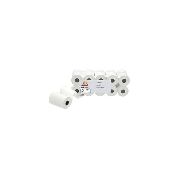 Rotolo per POS e carta di credito - 57 mm x 20 m - 55 gr - diametro esterno 40 mm - anima 12 mm - carta termica BPA free