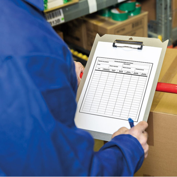 Portablocco in alluminio composito estremamente robusto e leggero con attacco per carrelli magazzino. Dotato di foro, e due inviti portapenna, molla in acciaio, per documenti formato A4. Dimensioni esterne studiate per facilitare l'uso in piedi reggendolo con una sola mano senza affaticare il polso. Dimensioni: 240x350mm. Peso 175 g.