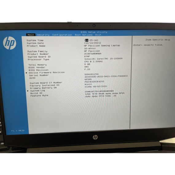 [Scatola aperta]Laptop HP Pavilion Gaming 16-A0032DX *white spots on screen / i5 / RAM 8 GB / 16,1″ FHD