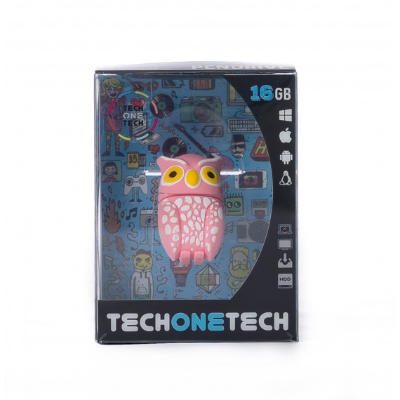 PENDRIVE 32GB BUHO PLUMI PINK TECHONETECH TEC5143-32 32 GB USB 2.0 - MEMORIA 32GB GUFO ROSA 3D