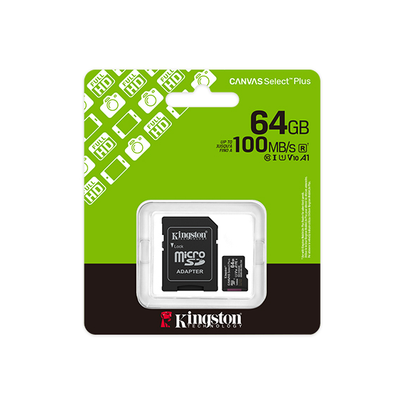La scheda microSD Canvas Select Plus di Kingston offre prestazioni affidabili per dispositivi Android e fotocamere con velocità fino a 150MB/s1. L'app A1 assicura multitasking fluido e tempi di caricamento rapidi. Resistente e versatile, è perfetta per le normali esigenze di storage.