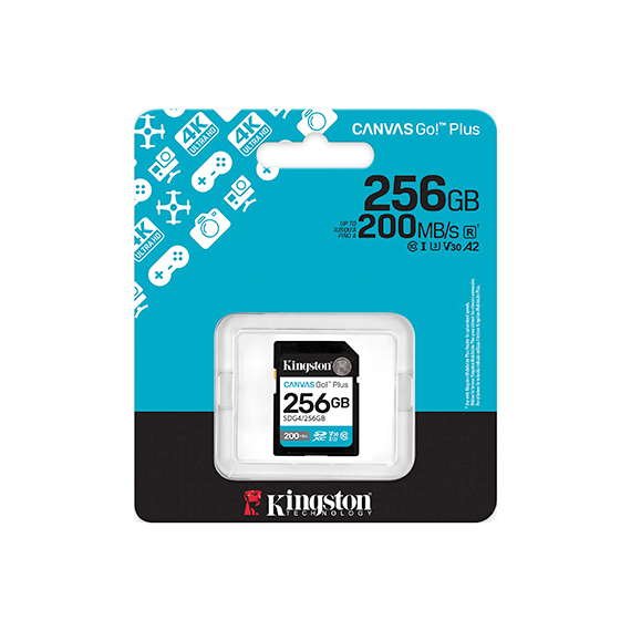 Scheda SDXC U3 e V30 Kingston 256gb SDG4/256GB Scheda di memoria Canvas Go SD,UHS-I velocità di trasferimento fino a 200MB/s