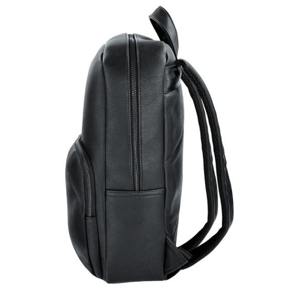 Zaino unico scomparto in ecopelle. Tasca frontale con zip in metallo, scomparto interno con tasca imbottita per notebook 15,6. Retro e spallacci imbottiti traspiranti, regolabili. Dimensioni: 29x40,5x13cm.