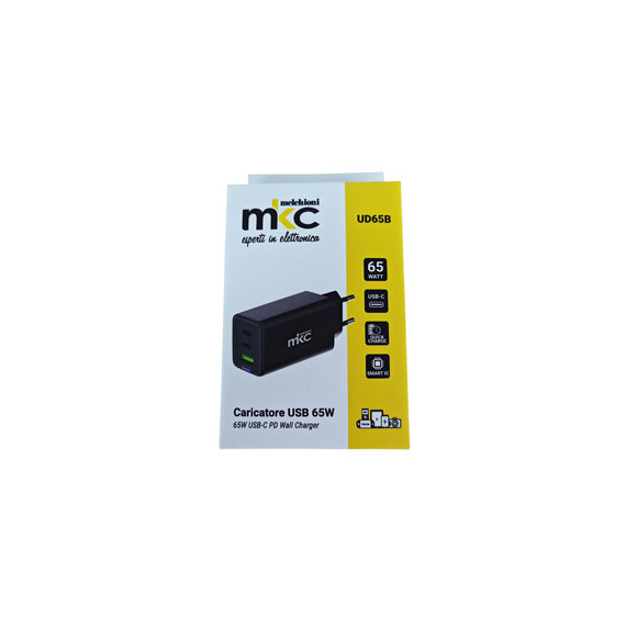 Caricatore USB - 65W - 2 USB-C + 1 USB-A - Nero - MKC Melchioni