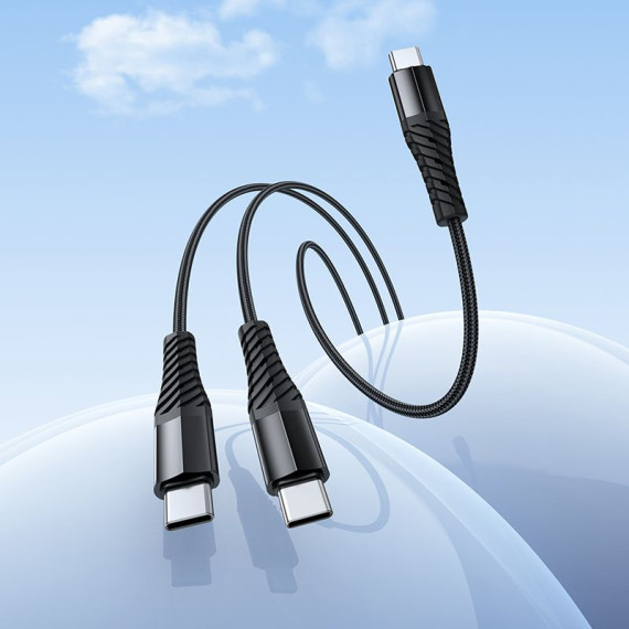 Cavo 2 in 1 a ricarica rapida: USB-C – USB-C / USB-C di Hoco (X123). Consente di caricare rapidamente 2 dispositivi contemporaneamente e trasferire dati.