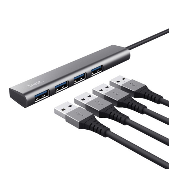 Hub Halyx - 4 porte - da USB-C a USB-A 3.2 Gen1 - alluminio - grigio - Trust