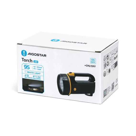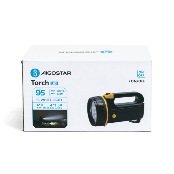 Torcia led nera a batteria 1W 95 lumen 6500K luce fredda L110xW125xH196mm IP20 Distanza massima: 130 metri