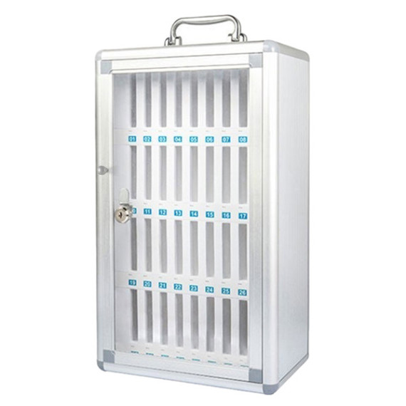 Struttura esterna in lega di alluminio, interno in MDF, pannello porta di apertura in acrilico trasparente e serratura a chiave, con 2 chiavi in dotazione.Celle numerate e personalizzabili.Maniglia in metallo per trasporto.Può essere fissato a parete (tasselli inclusi). Indicati per le scuole, in riferimento alla circolare ministeriale n. 0107190 del 19/12/2022.