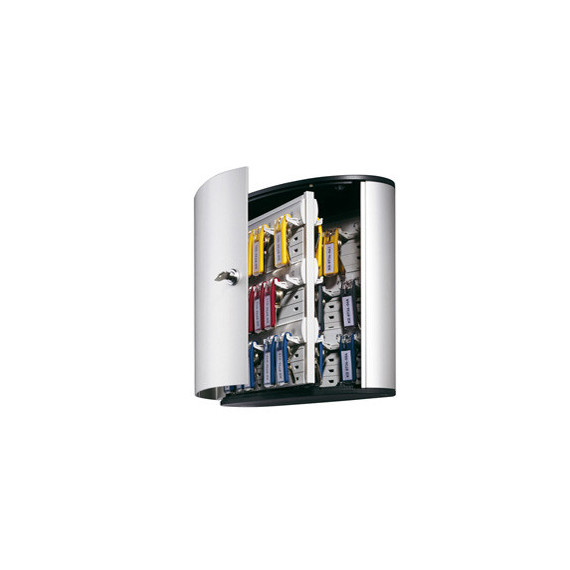 CASSETTA PORTACHIAVI DA MURO, REALIZZATA IN ALLUMINIO CON CAPACITÀ DI 54 CHIAVI. LO SPORTELLO SI APRE A PIÙ DI 90° PER FACILITARE L'ACCESSO ALLE CHIAVI. CHIUSURA CON SERRATURA E 2 CHIAVI NUMERATE CHE POSSONO ESSERE SOSTITUITE IN CASO DI PERDITA O ROTTURA. I PARTICOLARI PANNELLI INTERNI PERMETTONO ALLE BARRE PORTACHIAVI DI ESSERE AGGANCIATE ALL'ALTEZZA DESIDERATA ASSICURANDO UN'ALTA VERSATILITÀ DI GESTIONE. INCLUDE 6 PORTACHIAVI 1957 IN COLORI ASSORTITI. DIMENSIONI: 30,2X28X11,8CM.