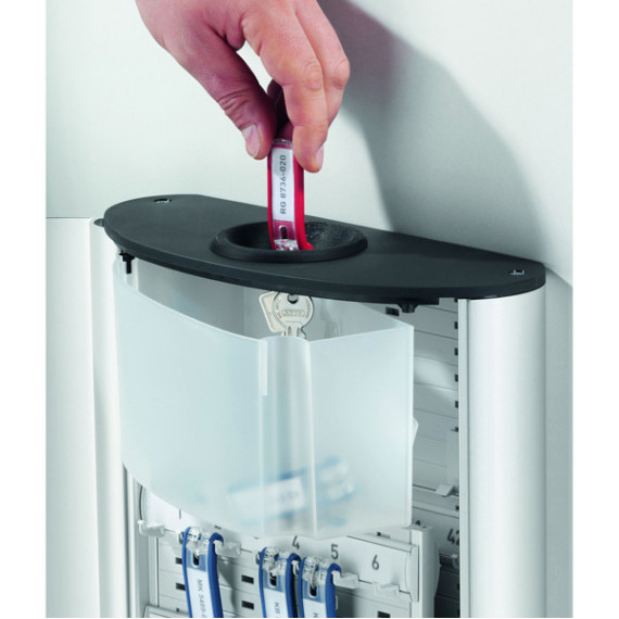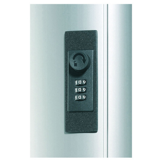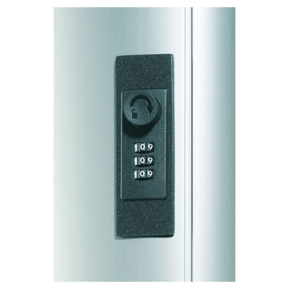 CASSETTA PORTACHIAVI DA MURO CAPACITÀ 54 CHIAVI, IN ALLUMINIO CON RITORNO VELOCE DELLE CHIAVI. DOTATA DI SPORTELLO CON APERTURA DI 90° PER UN FACILE ACCESSO ALLE CHIAVI E SERRATURA A COMBINAZIONE A TRE CIFRE CHE PUÒ ESSERE SCELTA FRA 1000 OPZIONI. QUESTA CASSETTA PORTACHIAVI PRESENTA, SULLA PARTE SUPERIORE, UNA FESSURA DOVE È POSSIBILE INSERIRE, A CASSETTA CHIUSA, LE CHIAVI DA RESTITUIRE CHE CADENDO IN UNA VASCHETTA VENGONO TRATTENUTE AL SICURO FINO ALL'APERTURA SUCCESSIVA. INCLUDE 6 PORTACHIAVI 1957 . DIMENSIONI 30,2X40X11.8CM