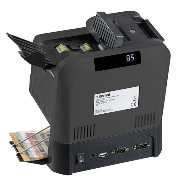 Conta verifica valorizza banconote a caricamento laterale. Permette di verificare la singola banconota e/o mazzette di banconote miste. Alle dimensioni compatte abbina un’avanzata tecnologia ed un software accurato e facilmente aggiornabile. Display frontale LCD e struttura apribile per una pratica manutenzione. Controlli: UV, MG, IR, immagine banconota, qualità della carta, filo di sicurezza. FUNZIONI PRINCIPALI: BATCH: permette di impostare conteggi di un determinato numero di banconote. Al raggiungimento del numero di banconote preimpostato la macchina si arresta e riparte automaticamente dopo la rimozione delle banconote dal vassoio di raccolta ADD: permette di eseguire conteggi consecutivi, sommandoli. REPORT: consente di visualizzare a display il dettaglio delle banconote correttamente verificate per denominazione e valore. PRT: permette di effettuare la stampa del report visualizzato a display (previo collegamento del dispositivo a stampante termica dedicata). MODALITÀ OPERATIVE: VALUE MODE: effettua la verifica ed il conteggio con valorizzazione e dettaglio di banconote Euro miste. SORT MODE: effettua la verifica, il conteggio e la valorizzazione di banconote dello stesso taglio. COUNT MODE (disattivazione di tutti i controlli): effettua il semplice conteggio e può essere utilizzata anche per buoni pasto, tickets, etc.