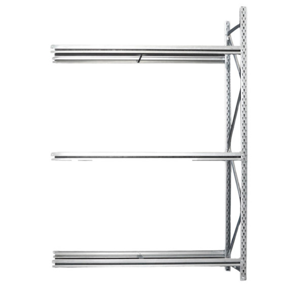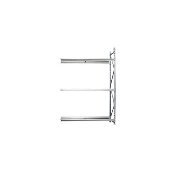 Scaffalatura adatta allo stoccaggio di pneumatici con diam. da mm.650 a mm.800, in lamiera di acciaio di prima scelta certificata e profilata a freddo con acciaio zincato a caldo secondo procedimento SENDZIMIR, adatte a operazioni svolte manualmente. Le portate indicate si intendono per carichi uniformemente distribuiti. Kit estensione 1500x500x2200h 3 livelli (misura lunghezza effettiva 1555x500x2200h)