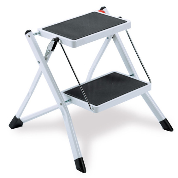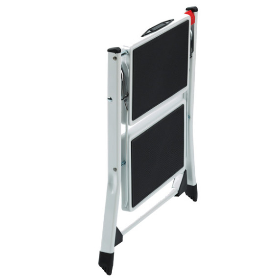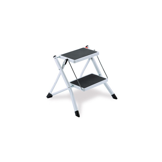 Sgabello pieghevole in acciaio per uso domestico e bricolage. Prodotto certificato secondo la normativa europea EN14183. Portata garantita 150 kg. Struttura in acciaio, con blocco antichiusura con tasto di sblocco. Comodo manico per il trasporto. Piedini antisdrucciolo. Due ampi gradini con tappetini antiscivolo. Facile da riporre: ingombro chiuso, misura solo 4 cm.Dati tecnici:Gradini: 2Massima estensione: 44cmMisure scala aperta: 49x50x44cmMisure scala chiusa: 57x50x4cmPeso Netto: 4kgPortata max: 150Kg