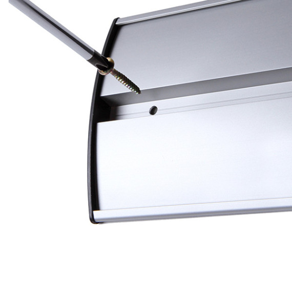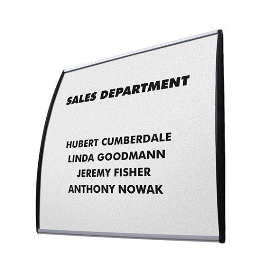 Profilo convesso e foglio frontale antiriflesso che mantiene la segnaletica nitida e facilmente leggibile. I terminali neri conferiscono un tocco elegante. Facile da installare grazie ai fori preforati
