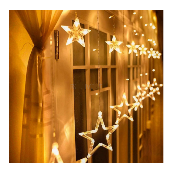Porta brillantezza e fascino al tuo spazio con queste splendide tende luminose a LED a forma di stella. Con 120 LED giallo caldo distribuiti su una lunghezza di 4,7 metri, questa catena luminosa è ideale per vetrine, decorazioni murali o fondali festivi.