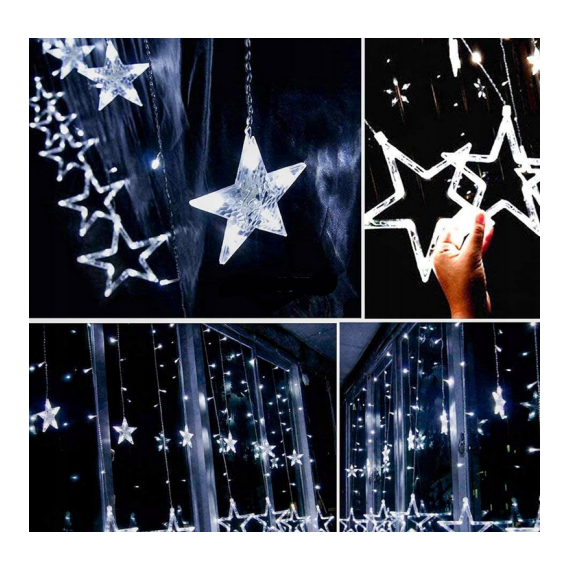 Porta brillantezza e fascino al tuo spazio con queste splendide tende luminose a LED a forma di stella. Con 120 LED bianco freddo distribuiti su una lunghezza di 4,7 metri, questa catena luminosa è ideale per vetrine, decorazioni murali o fondali festivi.