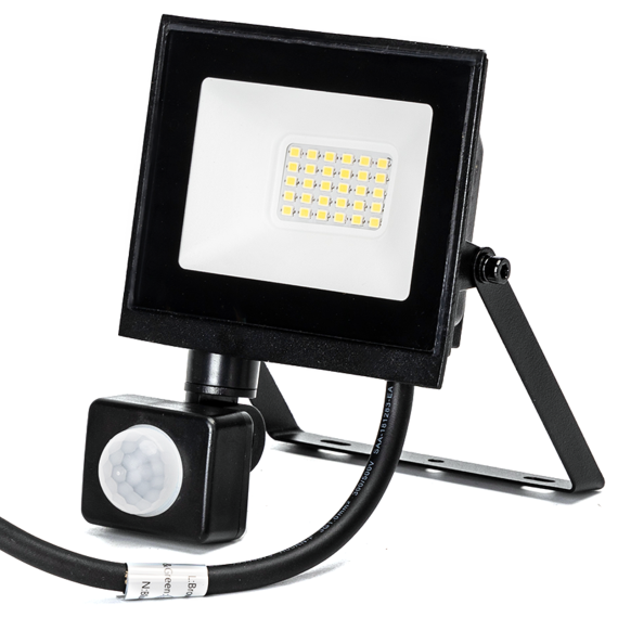 Faro LED da 20W con sensore integrato, ideale per illuminare ingressi, giardini, cortili, garage e zone di passaggio.