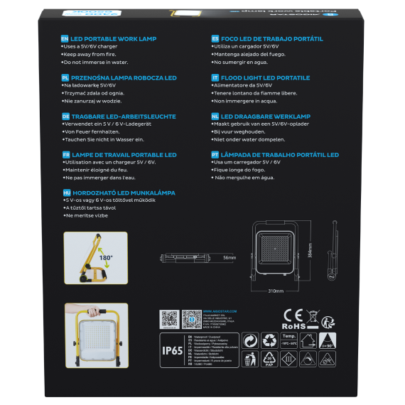 La struttura robusta in alluminio e PC e il grado di protezione IP65 lo rendono adatto sia per utilizzo interno che esterno, resistente a polvere e spruzzi d’acqua.