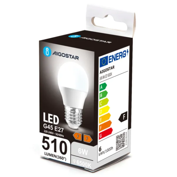 Lampadina led G45 6W attacco E27 510 lumen 6500K luce fredda misura D45H80mm equivale a 42W a incandescenza