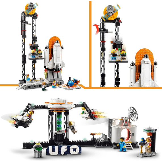 Lego Creator 3in1 - Montagne Russe spaziali - Lego 31142 o torre a caduta con ascensore o giostra spaziale rotante 874pz Anni 9+