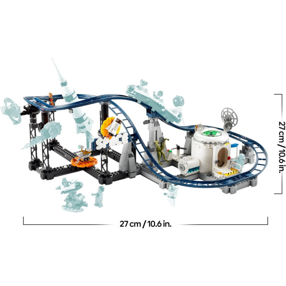 - Oggetto da esposizione: alte 27 cm, larghe 27 cm e profonde 55 cm, le Montagne russe spaziali possono essere esposte nelle camerette di tutti i bambini