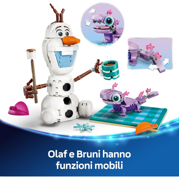 - PUPAZZO DI NEVE LEGO® COSTRUIBILE: questo coinvolgente set costruibile con pupazzo di neve Il divertente picnic di Olaf e Bruni (43287) contiene i personaggi LEGO ǀ Disney Frozen di Olaf e Bruni, una colorata coperta da picnic e altro ancora