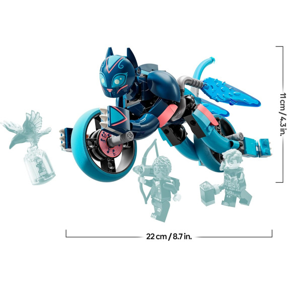 Il corvo della Mai-Strega ha rubato un ricordo e i bambini devono aiutare Zoey a recuperarlo! Con 2 opzioni di costruzione tra cui scegliere, i giovani sognatori adoreranno assemblare il gatto snodabile prima ditrasformarlo in una fantastica moto-gatto con ruote o in un veloce gatto giocattolo con turbo booster. La motocicletta insegue il corvo e il gatto giocattolo lo combatte.