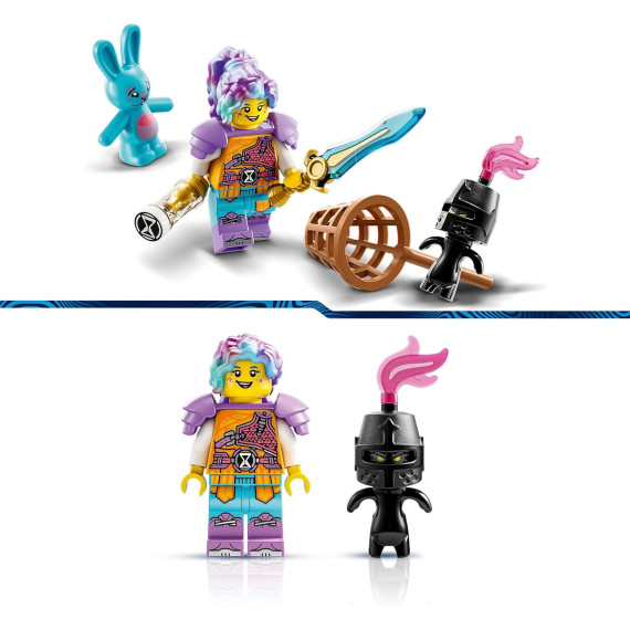 Una minifigure dettagliata di Izzie aiuta a dare vita all’azione. Izzie ha diversi accessori, tra cui un’armatura, una spada e una clessidra. Sono incluse anche le figure della Pedina Oscura e di un piccolo Bunchu in modo che i bambini possano ricreare l’intera storia.