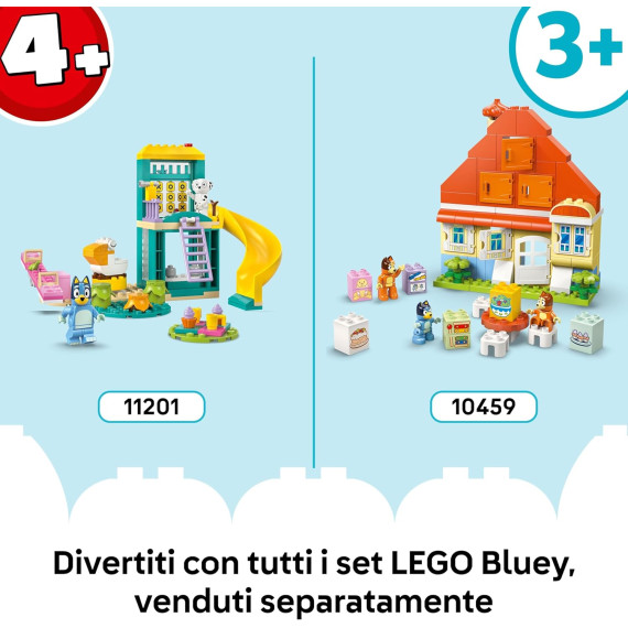 - Scopri altro divertimento con Bluey: scopri gli altri giocattoli per il gioco creativo Bluey LEGO® DUPLO® e Bluey LEGO® (disponibili separatamente), incluso set idonei per i bambini più piccoli, in età prescolare e dai 4 anni in su