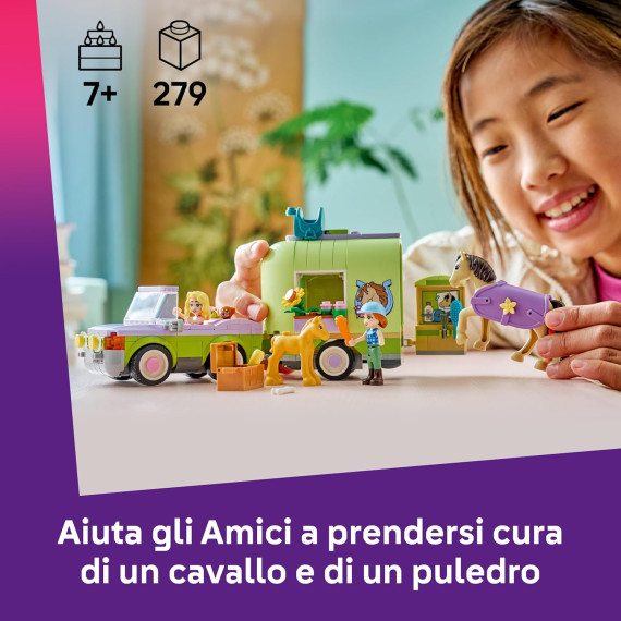 Lego Friends - Rimorchio per cavallo e puledro - Lego 42695 con Cavallo, Pony, Accessori per la Cura degli Animali 279pz Anni 7+