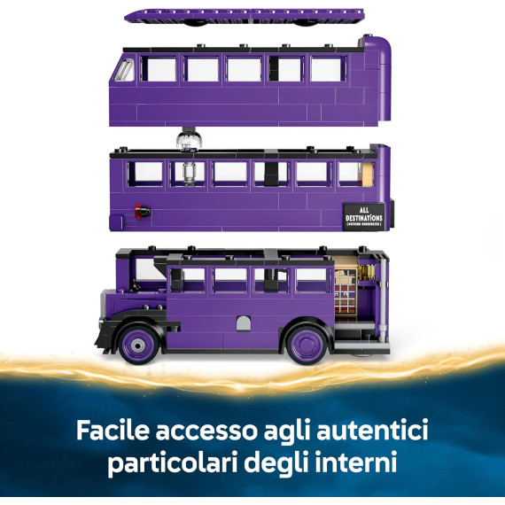 Tutti a bordo per un’emozionante avventura su Nottetempo™ con questo magico veicolo giocattolo LEGO® Harry Potter™ per bambini (76446). Un’idea regalo per il compleanno o un giocattolo per i bambini e le bambine dagli 8 anni in su e per tutti i fan che stanno scoprendo la magia del Mondo magico, questo è il modello in mattoncini LEGO più dettagliato di sempre di Nottetempo, l’iconico bus a tre piani. I livelli superiori possono essere rimossi per accedere facilmente all’interno, dotato di lettimobili e lampadario oscillante per un gioco realistico.