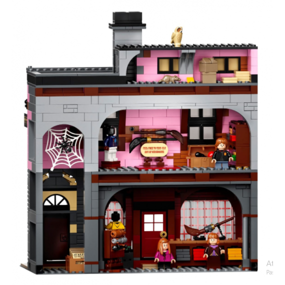 - Include Negozio di bacchette Ollivander, cartoleria Scribbulus™, Accessori di Prima Qualità per il Quidditch™, Gelateria Fortebraccio, libreria Il Ghirigoro, Tiri vispi Weasley e l'ingresso della Gazzetta del profeta.
