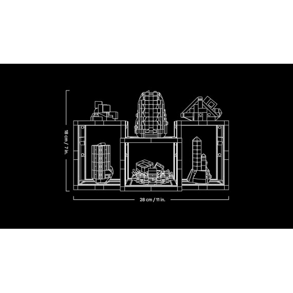 - Dimensioni: questo modello da collezione LEGO® di 880 pezzi build-and-display misura 18 cm di altezza, 28 cm di larghezza e 7 cm di profondità con tutti gli scaffali posizionati insieme