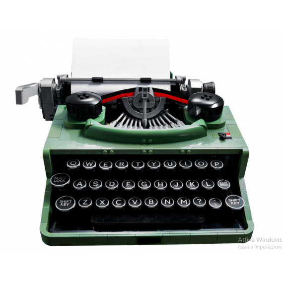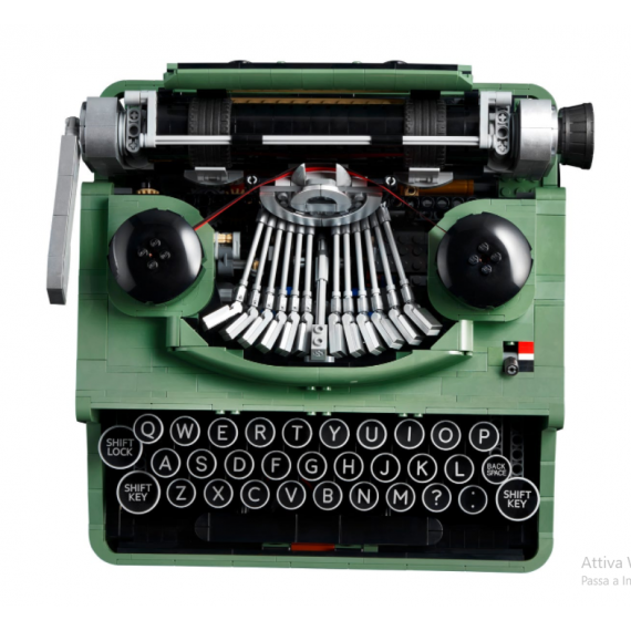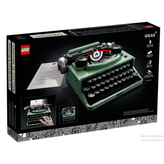 Creato da un fan LEGO e votato dai fan LEGO, questo modello dettagliato di macchina da scrivere è fornito con una lettera scritta da Thomas Kirk Kristiansen, un membro della quarta generazione della famiglia proprietaria di LEGO Group, che ha inserito la sua lettera nella macchina da scrivere per completare questo magnifico pezzo da esposizione.