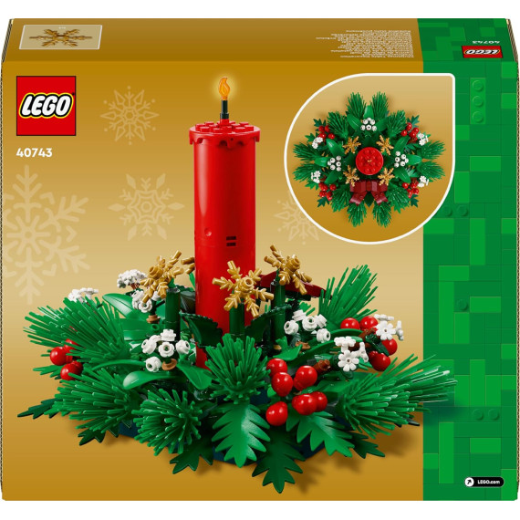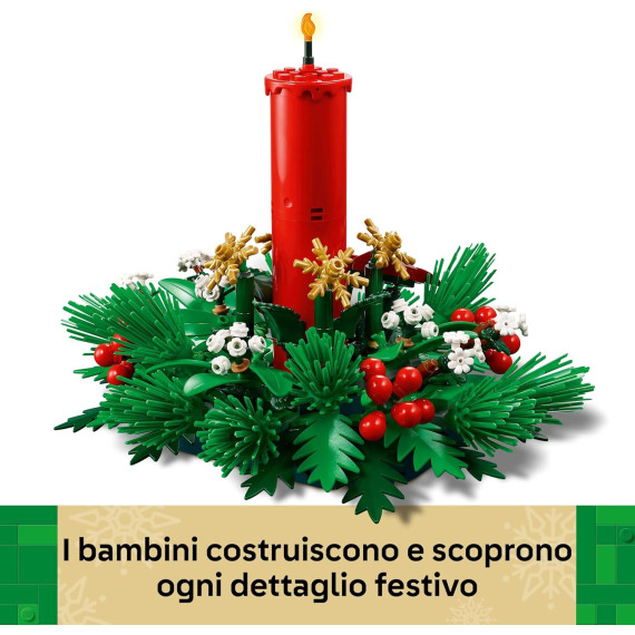 - Gioia festiva: questo set LEGO® di Natale presenta una candela rossa al centro, circondata da bacche rosse, stelle dorate e foglie verdi