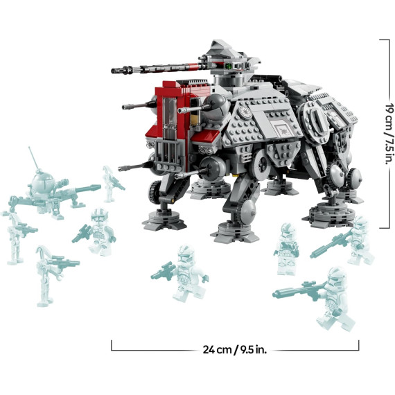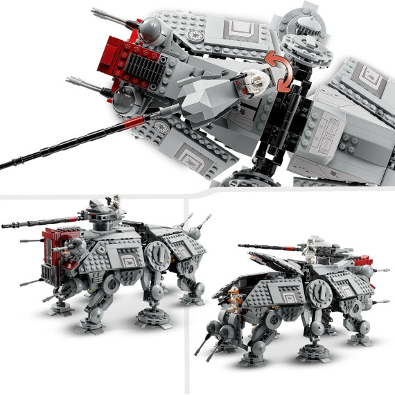 - Progettato per il gioco: l’AT-TE presenta gambe snodabili e una maniglia estensibile per sollevarlo e spostarlo, oltre a un abitacolo staccabile e 2 cabine dettagliate per agevolare l’accesso dei Cloni Soldato