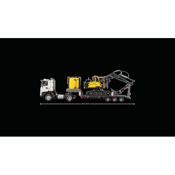 I giovani costruttori possono aprire le porte dell’autocarro LEGO Technic e inclinare la cabina dell’operatore per ammirare il suo motore a 6 cilindri con pistoni funzionanti, quindi possono guidare il camion giocattolo in posizione, staccare il rimorchio e abbassare la rampa per scaricare l’escavatore.