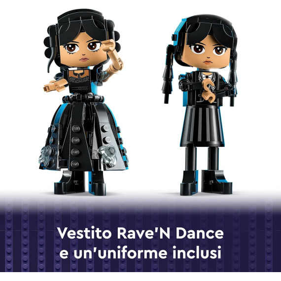 - Giocattolo Nevermore Academy: i fan della serie TV dai 10 anni in su possono costruire Mercoledì nella sua uniforme scolastica o ricostruirla con l’abito che indossava al Rave’N Dance, quindi metterla in posa sul supporto