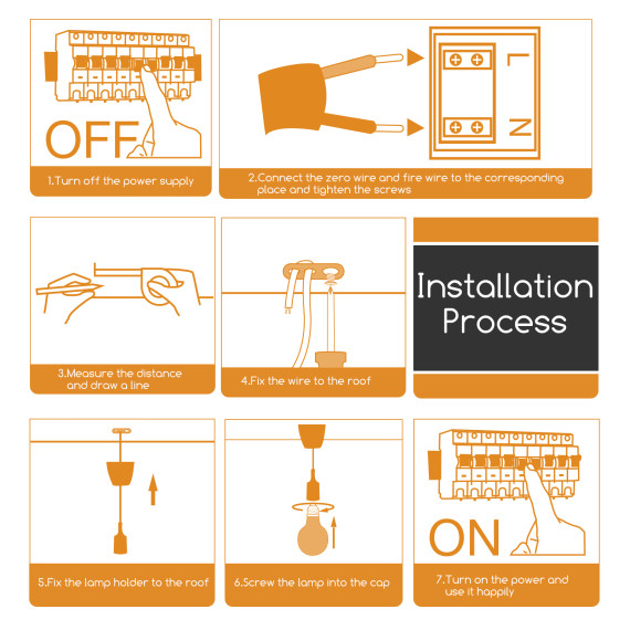 Portalampada in plastica attacco E27 arancione con cavo 1mt - MAX 60W - Voltaggio: 250V porta lampada da interno