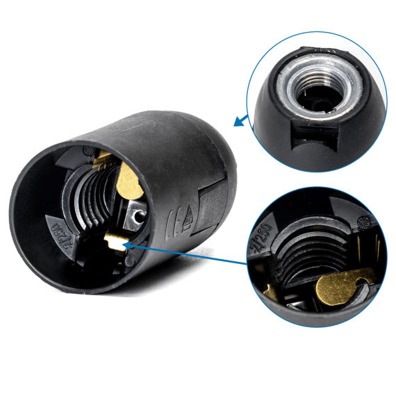Portalampada in plastica con terminale a molla attacco E14 colore nero - 2A 250V T210 - dimensione 25.7x56.8mm porta lampada