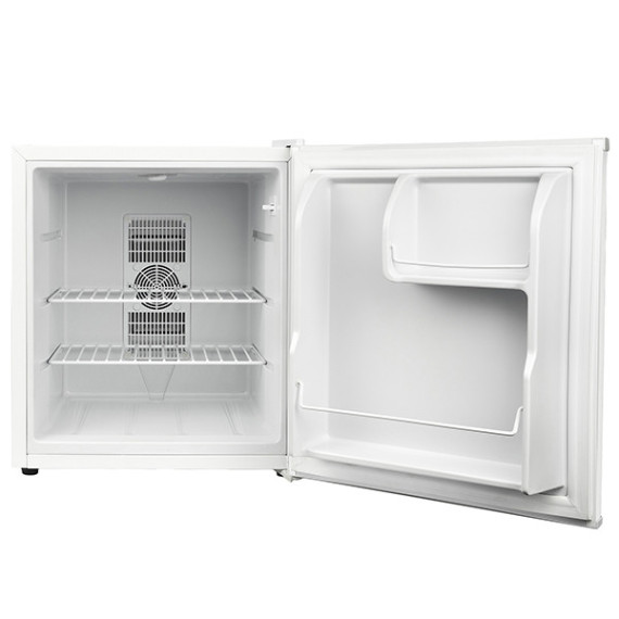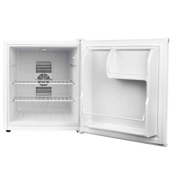 Frigorifero super silenzioso con funzionamento a semiconduttore, ideale per camere d’albergo, piccoli appartamenti e uffi ci per la conservazione di frutta e verdura o per la refrigerazione delle bevande. Dotato di doppia cella di peltier e di pareti ben isolate, è in grado di raggiungere basse temperature anche quando opera in ambienti molto caldi. Bassi consumi (solo 73 kWh all’anno) e funzionamento senza utilizzo di gas refrigerante. Capacità 46 litri Sistema di raffreddamento senza compressore e gas refrigerante 2 celle di Peltier e 2 ventole di raffreddamento Basso consumo energetico: 65W/73 KWh anno Classe energetica E Funzionamento super-silenzioso: 35dBA Termostato regolabile da 3°C a 18°C Luce interna Sportello reversibile Potenza: 65W Alimentazione: AC 100-240V ~ 50-60Hz Dimensioni (L x H x P): 43 x 51.7 x 51 cm Peso: 12.2 Kg