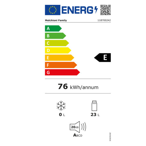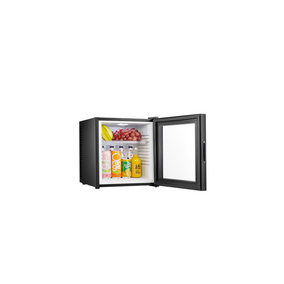Sistema di raffreddamento termoelettrico a celle di Peltier con tecnologia brevettata HEAT-PIPE.Minifrigo con esclusivo sistema di regolazione a logica fuzzy per un basso consumo energetico. Senza CFC, rispettoso dell'ambiente. Nessuna vibrazione e nessun rumore. Capacità di raffreddamento (temperatura ambiente 25°C) 5°-18°C. Anta reversibile con maniglia incassata nella parte superiore. Ripiano in plastica regolabile e luce LED interna. Alimentazione: 220-240V / 50-60Hz. Potenza 58W. Classe Energetica (ERP): E. Capacità: 23L. Dimensioni: 38x38x47,5cm. Dimensioni interne: Larghezza 31,2cm Altezza 37,7cm Profondità 20,7cm