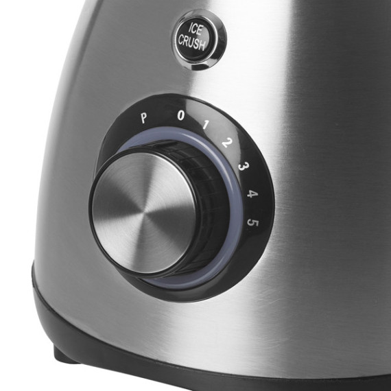 Frullatore elettrico a 5 velocità e funzione Pulse con caraffa in vetro da 1,5L. Dotato di 6 lame in acciaio inossidabile perfette anche per tritare il ghiaccio. Luce LED di funzionamento, base in acciaio e piedini antiscivolo. Coperchio con dosatore per l'aggiunta di ingredienti durante la miscelazione.• Alimentazione: 220-240V ~ 50/60Hz• Potenza: 600W• Dimensioni: 22 x 19 x 32 cmColore: nero/grigio