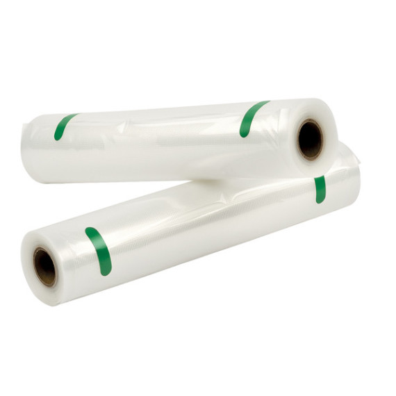 Rulli in PE realizzati in materiale BPA free di alta qualità, certificato per il contatto con gli alimenti. Compatibili con tutte le principali macchine per il sottovuoto in commercio. Sono adatti per la cottura in sottovuoto e possono essere scaldati, congelati, lavati, bolliti. Dimensione: 28x500cm - Apertura 28cm.