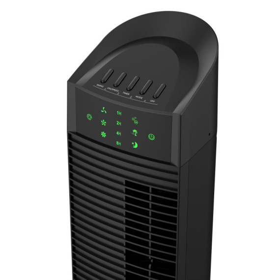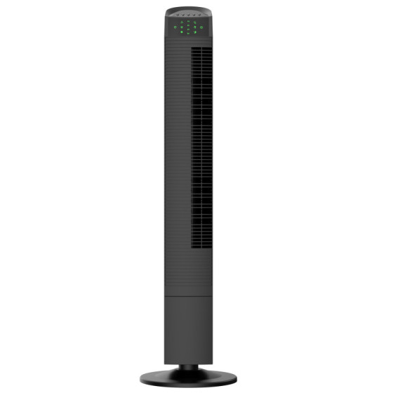 Ventilatore da terra Skyline a 3 velocità con telecomando per gestire accensione/spegnimento, velocità, timer e oscillazione orizzontale a 90°. Timer di spegnimento fino a 8 ore. Display LED digitale che consente una visualizzazione rapida delle impostazioni settate. La maniglia integrata sul retro assicura un comodo utilizzo ed un facile trasporto del ventilatore. Dispone di alloggio telecomando sul retro del ventilatore per evitarne lo smarrimento. Alimentazione: 220-240V - 50Hz Potenza: 65W Decibel: <(><<)>55 dB Air Flow: > 500 m3/h Funzioni: 3 modalità di ventilazione: costante/vento naturale/sleep, risparmio energetico: abbassamento automatico delle luci led del pannello di controllo Materiale: ABS+HIPS (Polistirene antiurto) Dimensioni: 29 x 29 x 90,7 (h) cm Peso: 3,7 Kg Colore nero