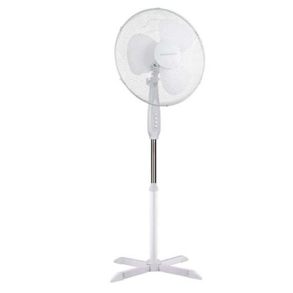 Ventilatore a piantana perfetto per creare una ventilazione idonea anche in superfici grandi. 3 velocità 3 pale diametro 40 cm Funzione oscillazione Griglia a nido d’ape Alimentazione: 220-240V ~ 50Hz Assorbimento: 40W